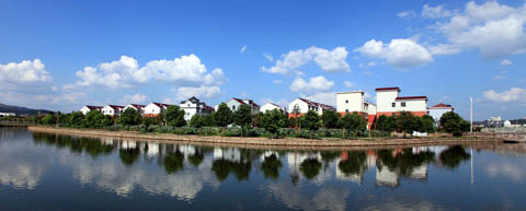 花园村坚持村庄建设与生态环境一起抓,致力打造农民时尚乐园,全村制订了“合理布局、全面规划、整体拆建、分步实施”的新农村建设方案,做到道路硬化、路灯亮化、环境绿化、卫生洁化、饮水净化。行政区域调整后,又将全村划分为村民平安居住区、高效生态农业区、第三产业服务区、高科技工业园区四个区,将原十个行政村改为十个小区。如今,花园红木家具城是村级最大红木家具专业市场,与花园原木市场、板材市场、工艺品雕刻一条街以及红木家具产业园一起,打造了“中国红木家具第一村”;花园粮油商贸城是省二星级市场,花园购物广场是东阳农村最大的购物中心,与花园大厦、花园娱乐城、饮食一条街、建材一条街一起,形成了集休闲、餐饮以及购物于一体的商业圈;花园农业生态园、健身休闲公园、吉祥湖音乐喷泉和水幕电影、中华百村图、南山寺佛教文化园、泰山乐园、牡丹园、桂花园以及学生社会实践基地等,组成了一个完整的生态旅游观光区。